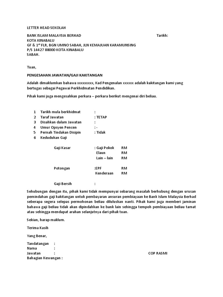 Contoh Surat Pengesahan Majikan Pemotongan Gaji Letter 7saudara Com